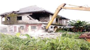 The demolition which commences with the three houses belonging to the commissioner representing Isoko ethnic nationality in the Delta State Oil Producing Areas Development Commission, is expected to last until the community is free from illegal structures.