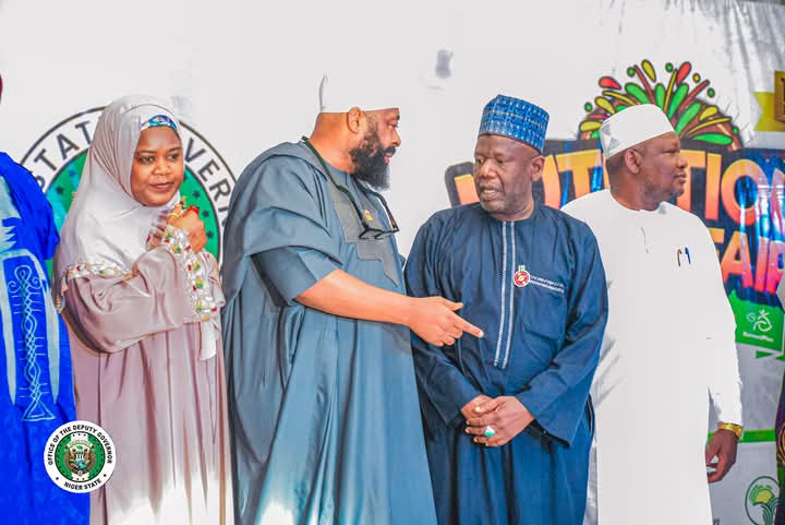 The Niger Farmer Governor, Mohammed Umar Bago in a conversation during a group photography at the 10 edition of the Nutritious Food Fair.. recently held at Legbo Kutigi…Minna, Niger State